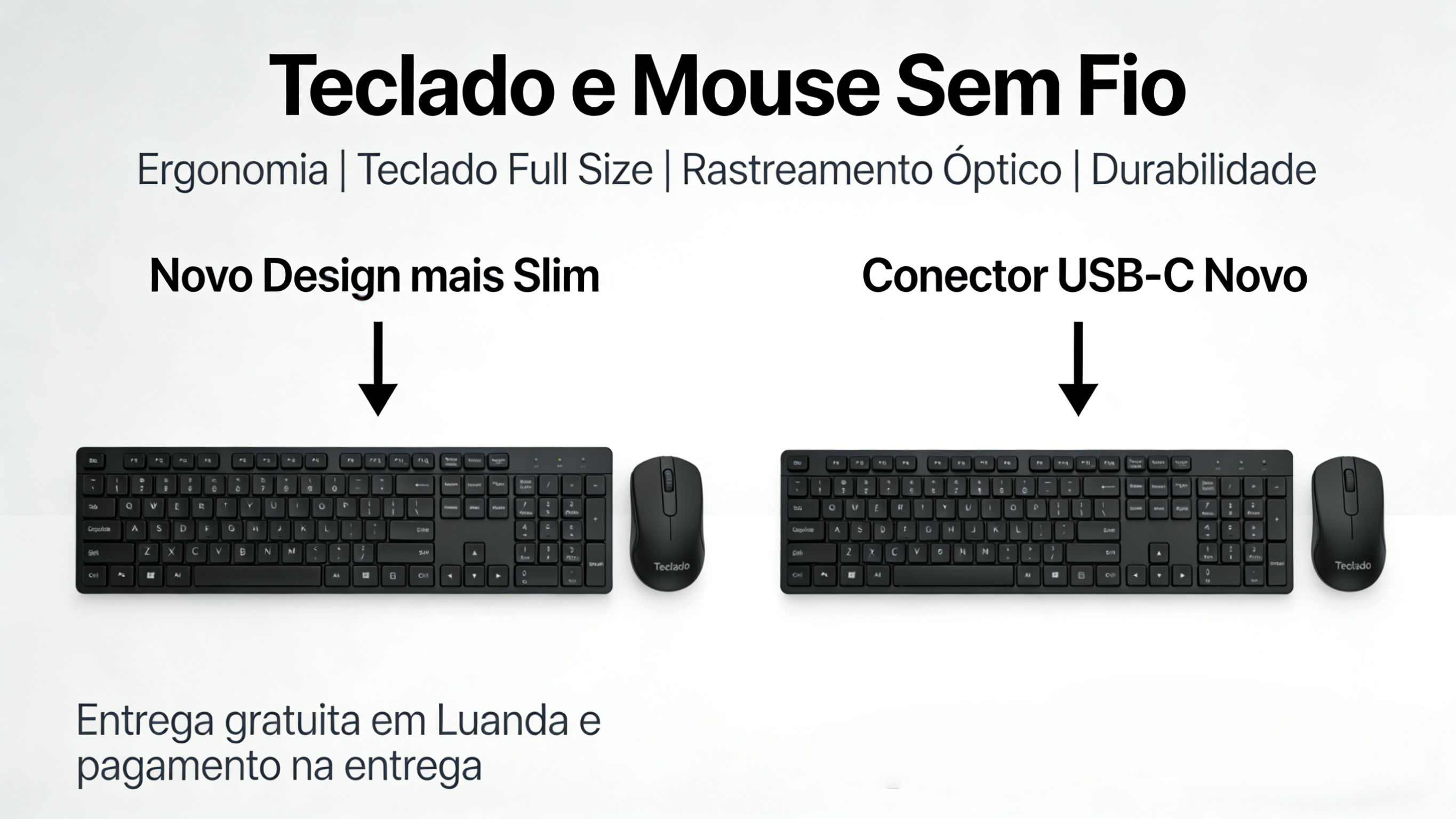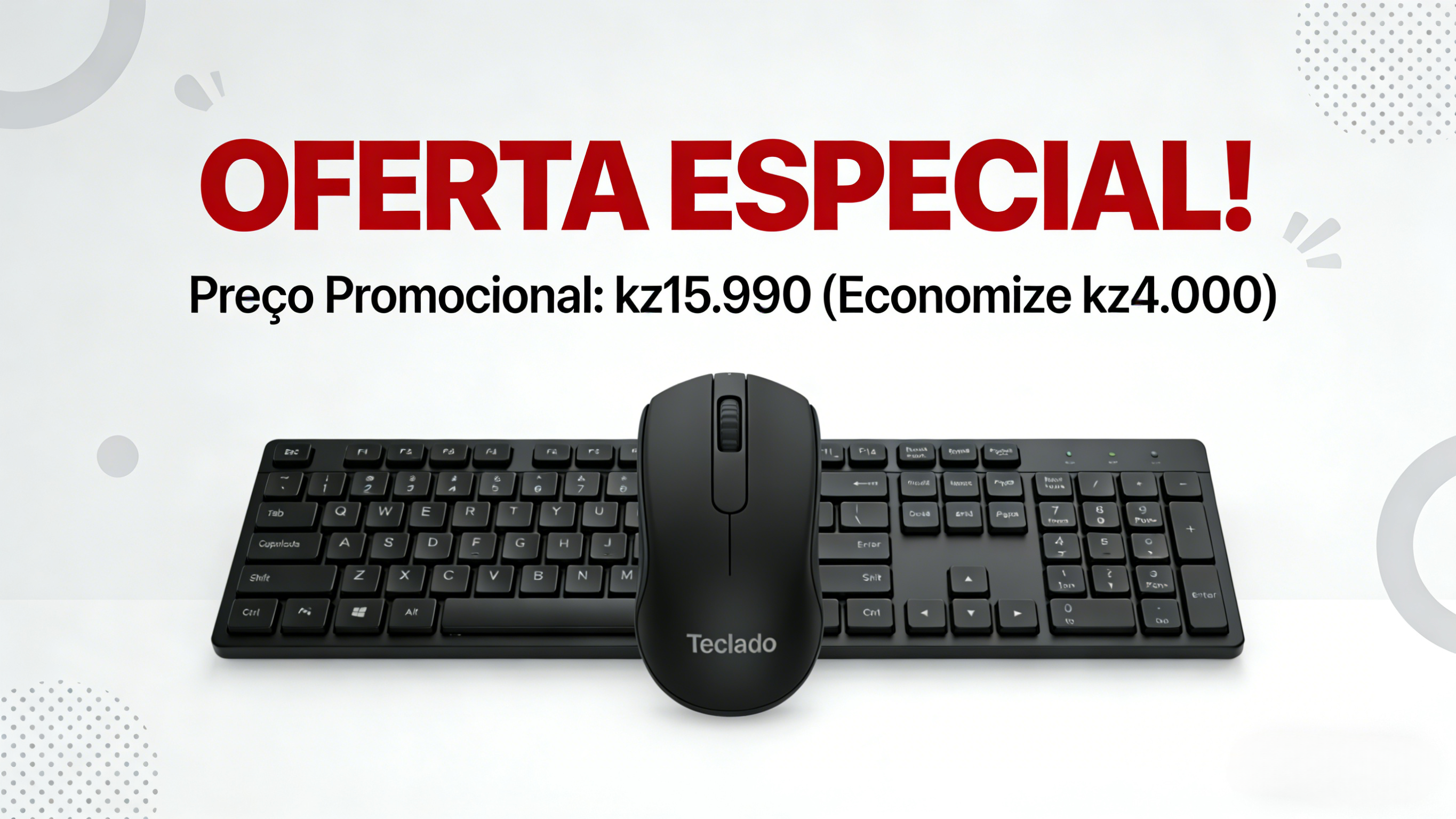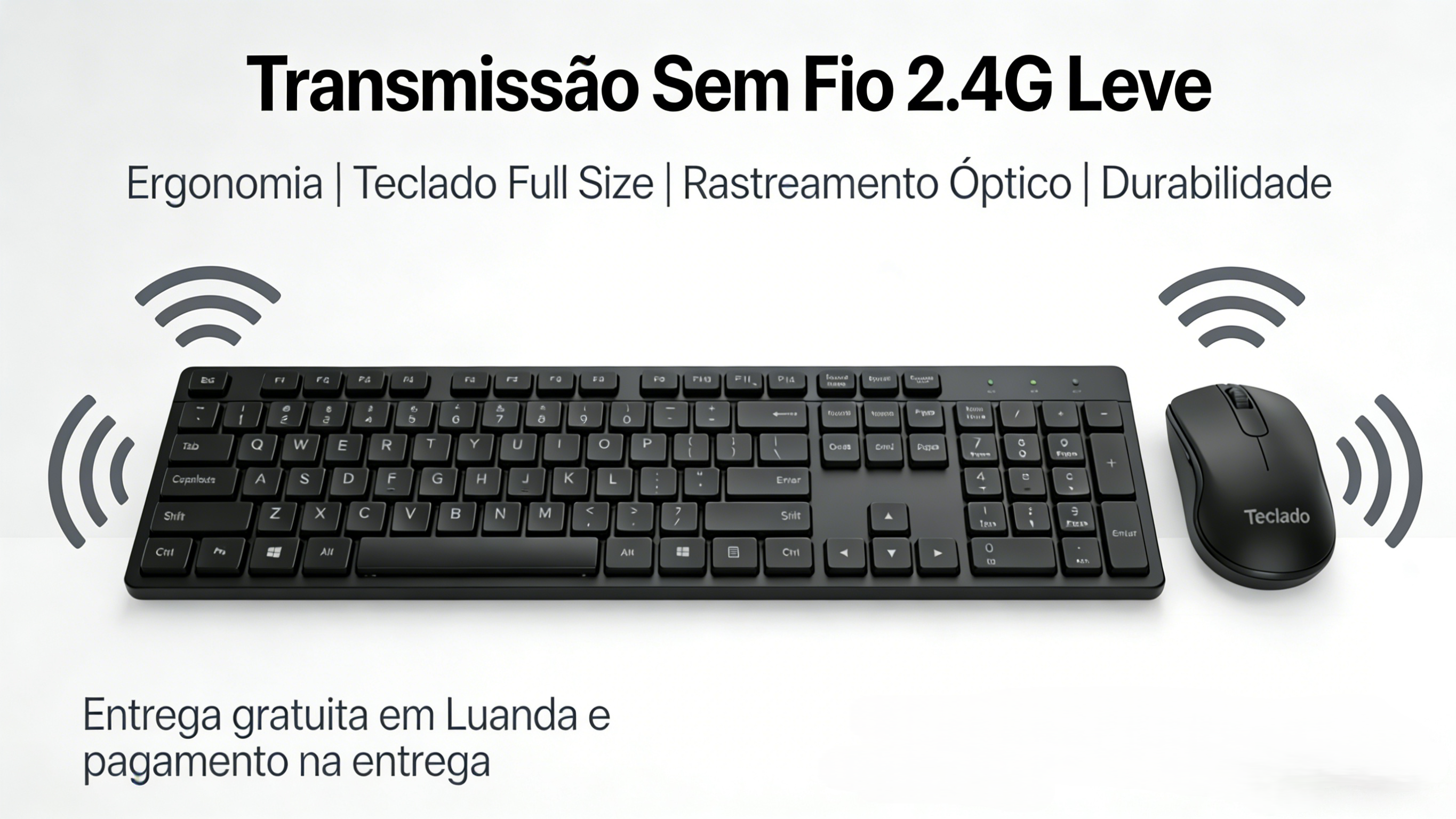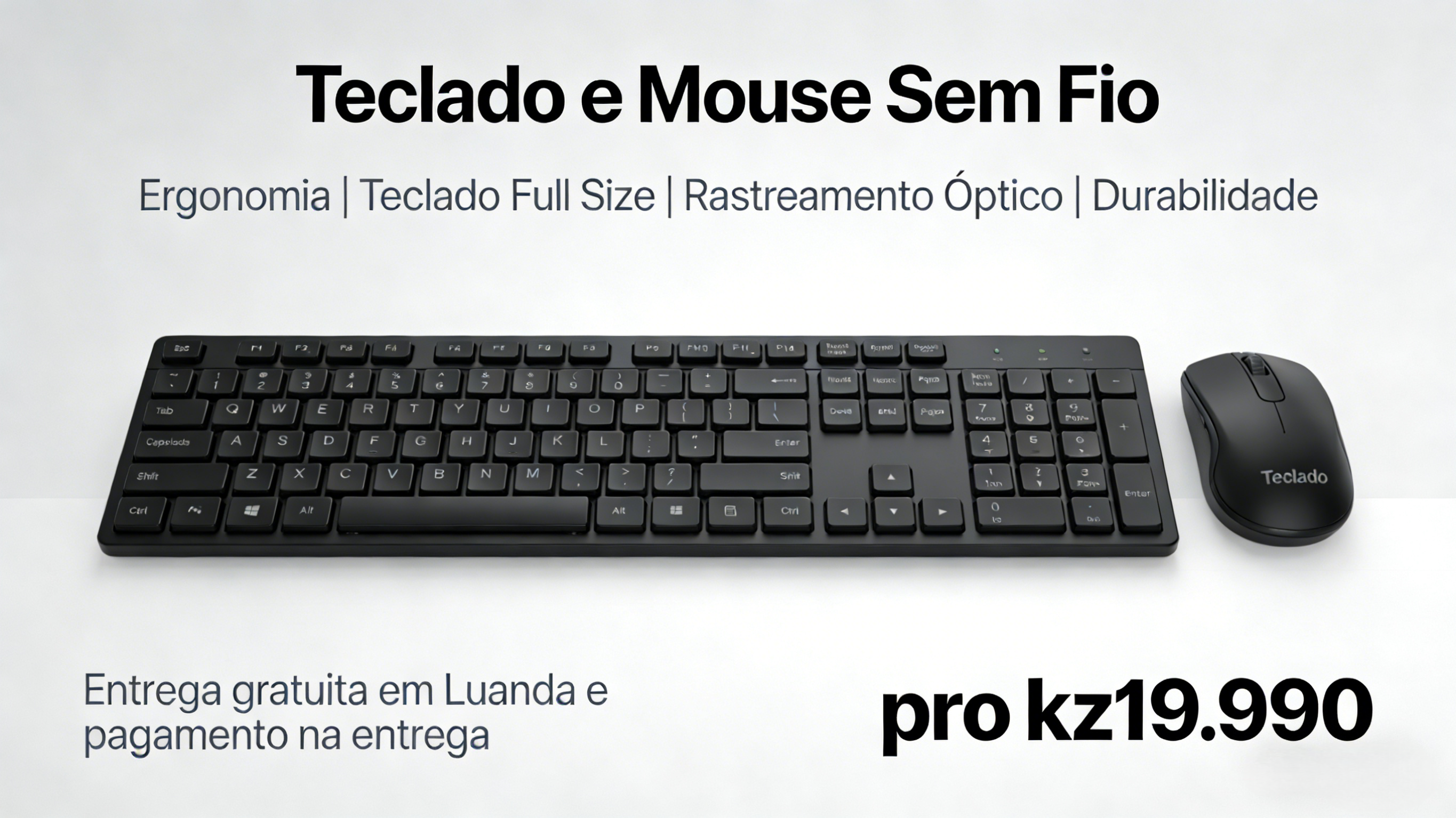 Este kit de teclado e rato sem fio é a escolha ideal para o seu escritório ou uso doméstico em Angola!