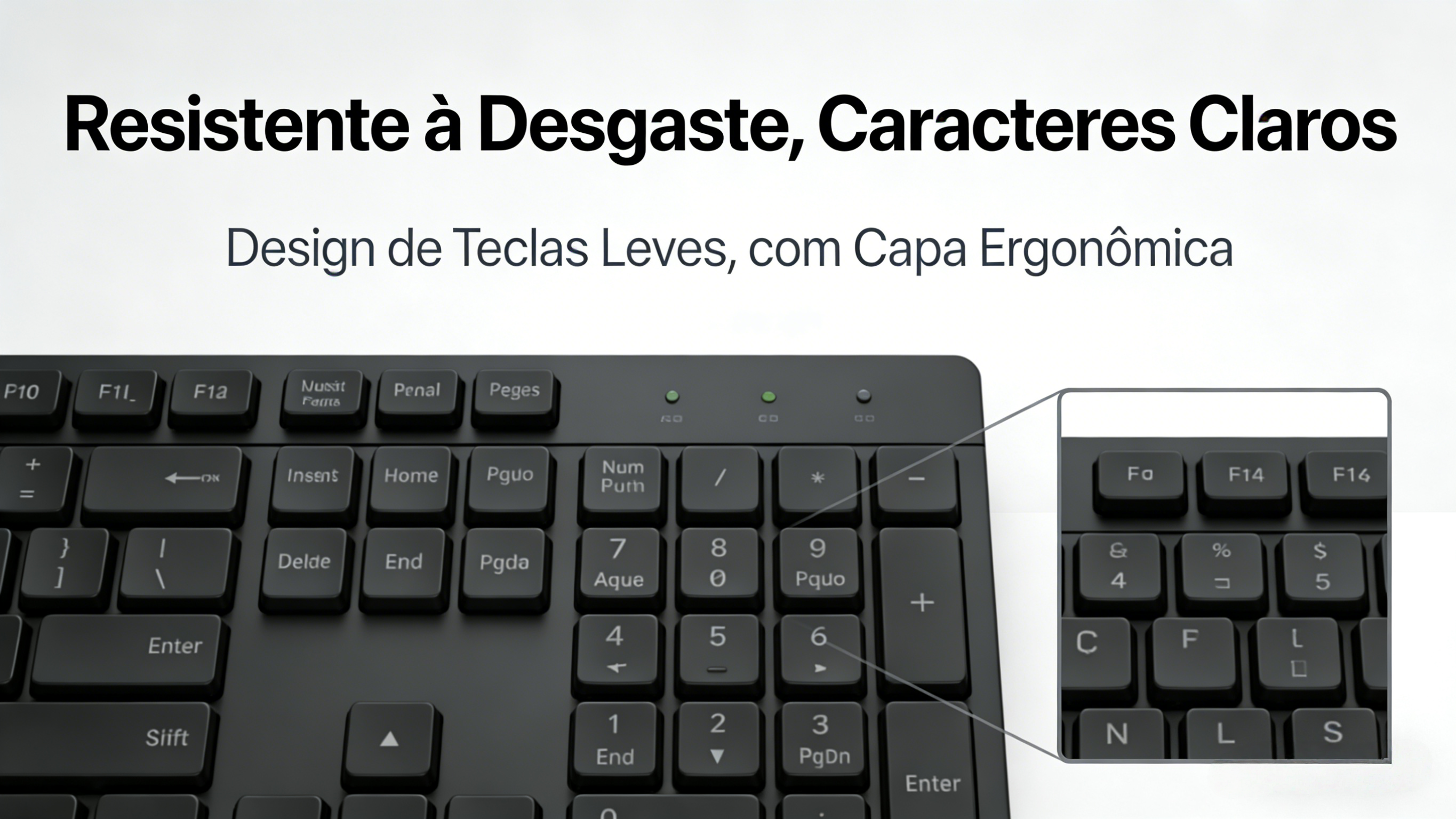 Teclas Duráveis e de Baixo Ruído: Legendas claras, resistentes ao desgaste; teclas silenciosas para não perturbar o ambiente.