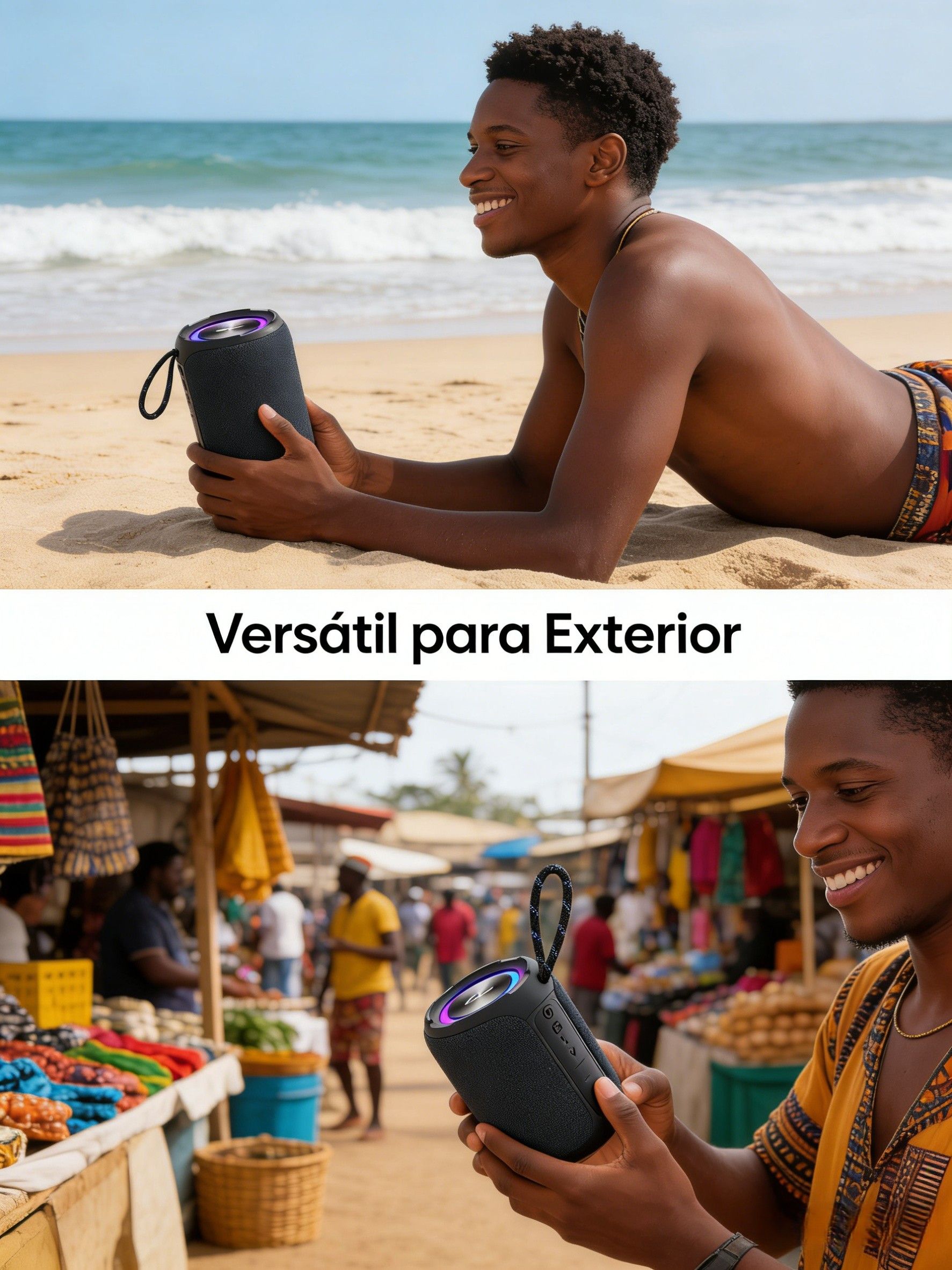 这款40瓦音箱是安哥拉充满活力生活的理想配饰——无论你是在街头市场卖货,还是在海滩与朋友聚会,或是在家中享受片刻。 凭借强劲的音效和充满活力的低音,它能为任何环境注入能量(非常适合吸引集市顾客! )。 它的防水(IPX7)和便携设计配有连接线,让你可以随时携带,无需担心细雨或跌倒。 此外,长续航(长达10小时)适应了本地长时间户外活动的日常习惯。 优势(适应安哥拉现实)40W低音炮适合热闹环境 强大的功率足以穿透集市或海滩的喧嚣,传送清晰的音乐和充满活力的低音——非常适合吸引顾客到摊位或与朋友聚会。 IPX7户外防水 不用担心海滩水或细雨:扬声器抗水接触,让你感受到安哥拉常见的户外时刻。 便携带抽绳轻便抽绳设计:只需挂在你的背包或展会展位的衣架上,随时随地携带。 最长10小时自动驾驶充电电池,全天候使用:非常适合从早到晚的集市,或没有插座的海滩聚会。 色彩丰富的LED灯效:与音乐同步的鲜艳LED灯:无论是在集市黄昏还是海滩的夜晚,都能让环境更加吸引人、更有活力。 使用场景(安哥拉常见)街头市场:播放音乐吸引顾客,活跃你的摊位。 海滩见面:即使有海浪声,也能提升与朋友见面的氛围。 家庭露台:让小型家庭聚会变成更有趣的时光。 散步或徒步:背在背包上,伴随着音乐伴随旅行。 附加信息功率:40W防水:IPX7电池:2000mAh(续航最长10小时) 连接方式:蓝牙5.3(手机快速连接) 附带配件:USB充电线+连接