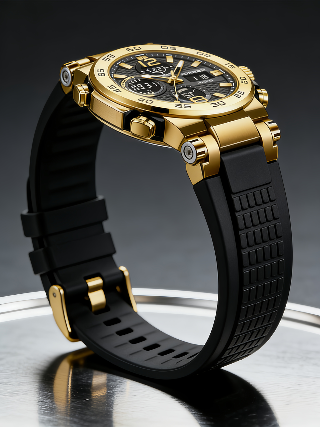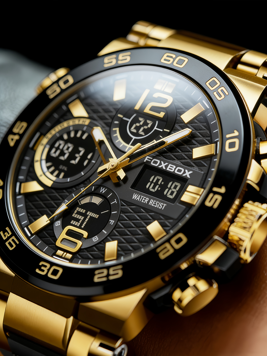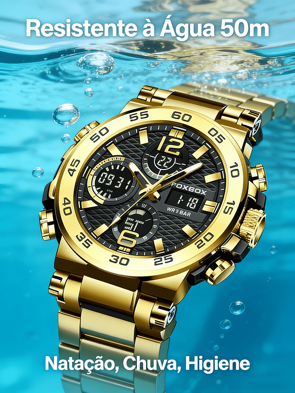 FOXBOX Novo Estilo Dupla Função Tira de Cola Multifuncional Tira de Cola Fosforescente Cronógrafo Tira de Cola para Relógio Esportivo Casual Resistente à Água para Homens