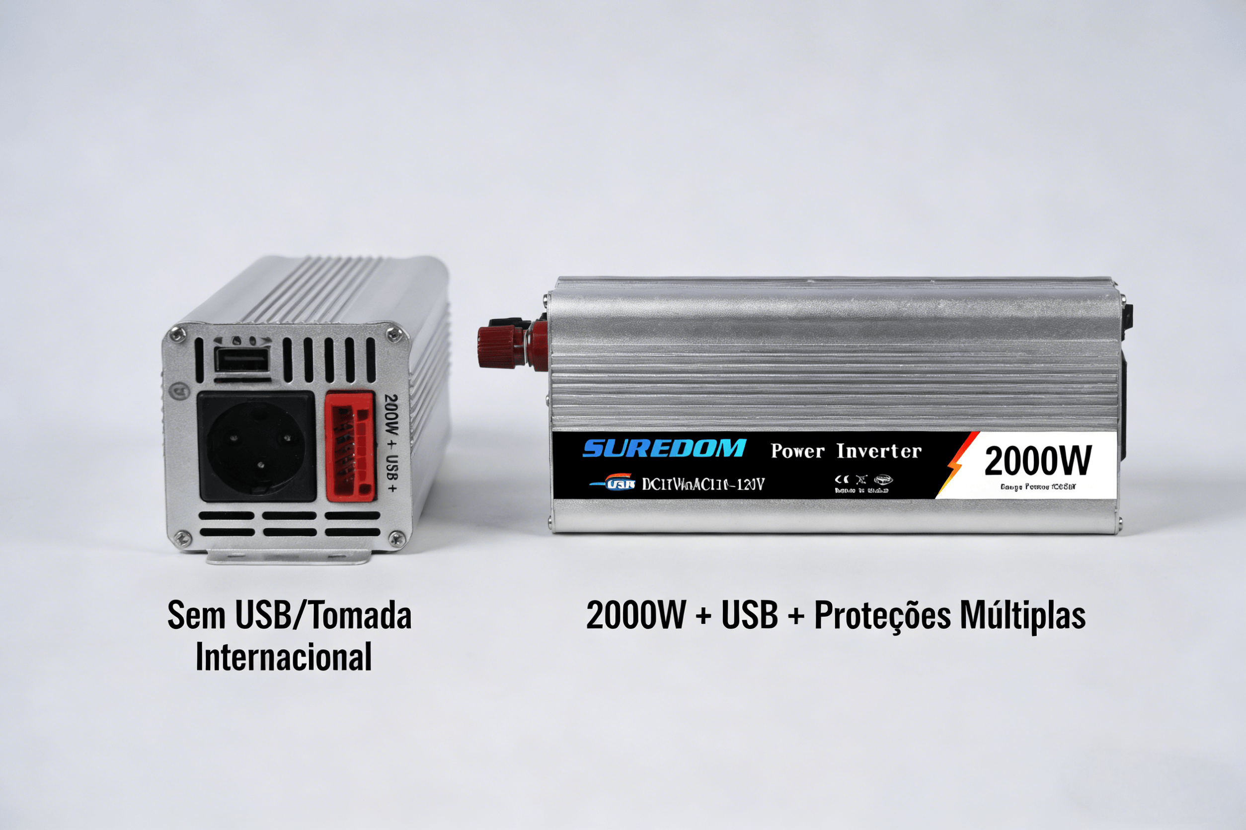 Potência de 2000W + Porta USBSuporta aparelhos de maior consumo (como refrigeradores portáteis para motoristas de longa distância) e porta USB para carregar dispositivos digitais (essencial para comerciantes receber pagamentos via celular).