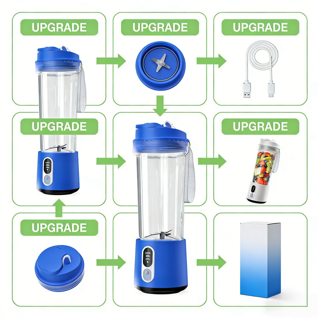 Este liquidificador portátil azul atualizado é o companheiro perfeito para quem ama sucos frescos e nutritivos no dia a dia! Compacto, potente e fácil de manusear, ele acompanha você em qualquer momento — seja na casa, no trabalho, na academia ou em passeios pela cidade.