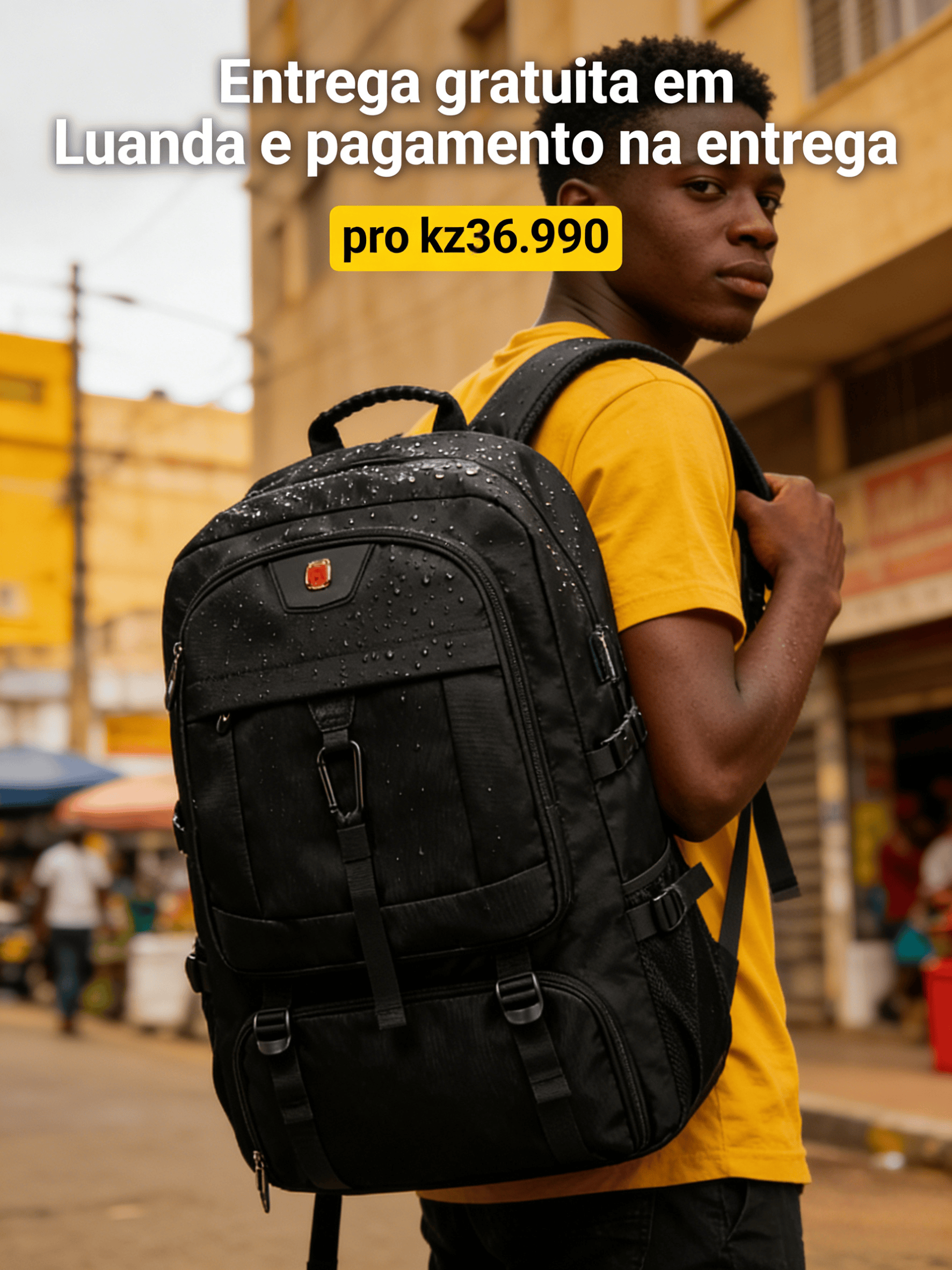Esta mochila preta de grande capacidade é o acessório versátil ideal para o dia a dia angolano — perfeita para estudantes, profissionais que se deslocam diariamente, entusiastas de viagens curtas ou atividades ao ar livre. Com design casual e esportivo, ela combina durabilidade, praticidade e proteção: o tecido impermeável resiste a chuviscos (comuns em estações de chuva de Angola), a capacidade ampla acomoda tudo o que você precisa, e o suporte lombar reduz a fadiga mesmo em uso prolongado — adaptada às rotinas locais, desde trajetos de ônibus até passeios em parques ou viagens entre cidades.