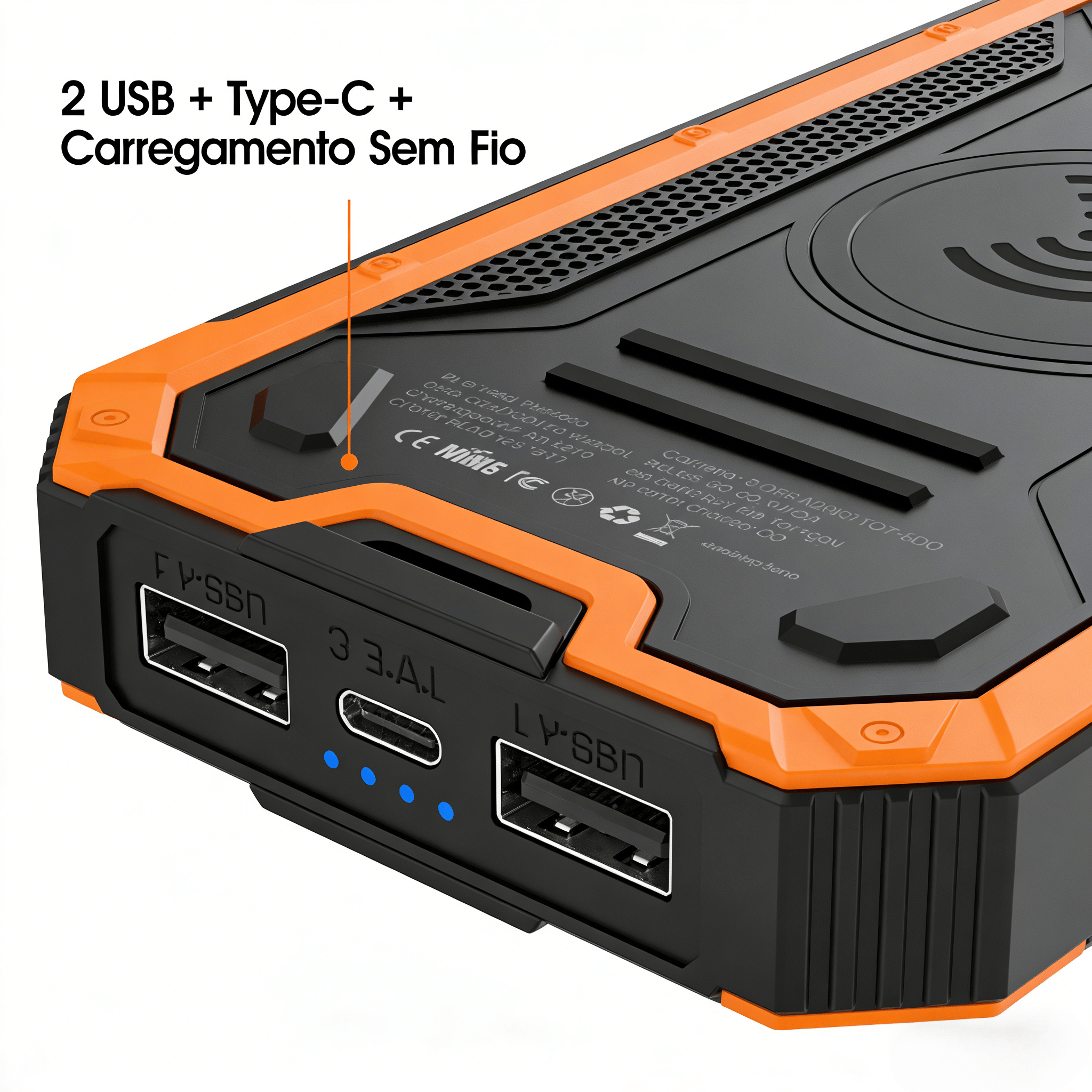 Carregue 4 Dispositivos SimultaneamenteSuporta 2 carregamentos via USB, 1 via Type-C e 1 sem fio — perfeito para mercadores ambulantes: carregue seu celular (para receber pagamentos digitais) e os dos clientes ao mesmo tempo, sem esperas.