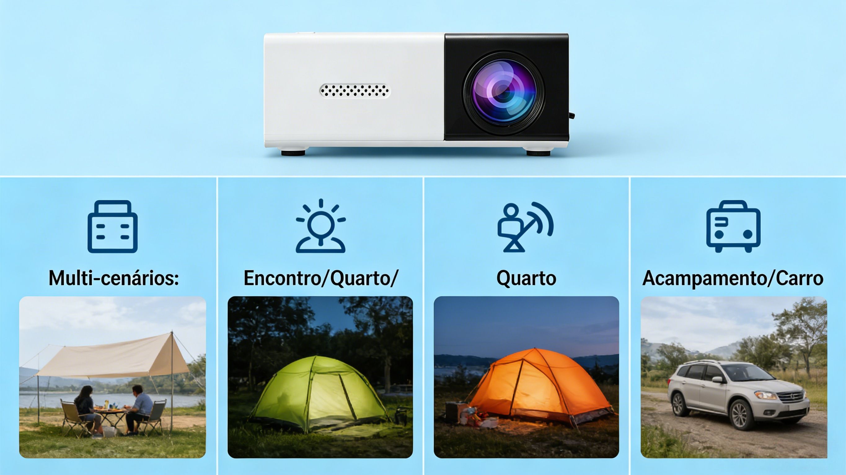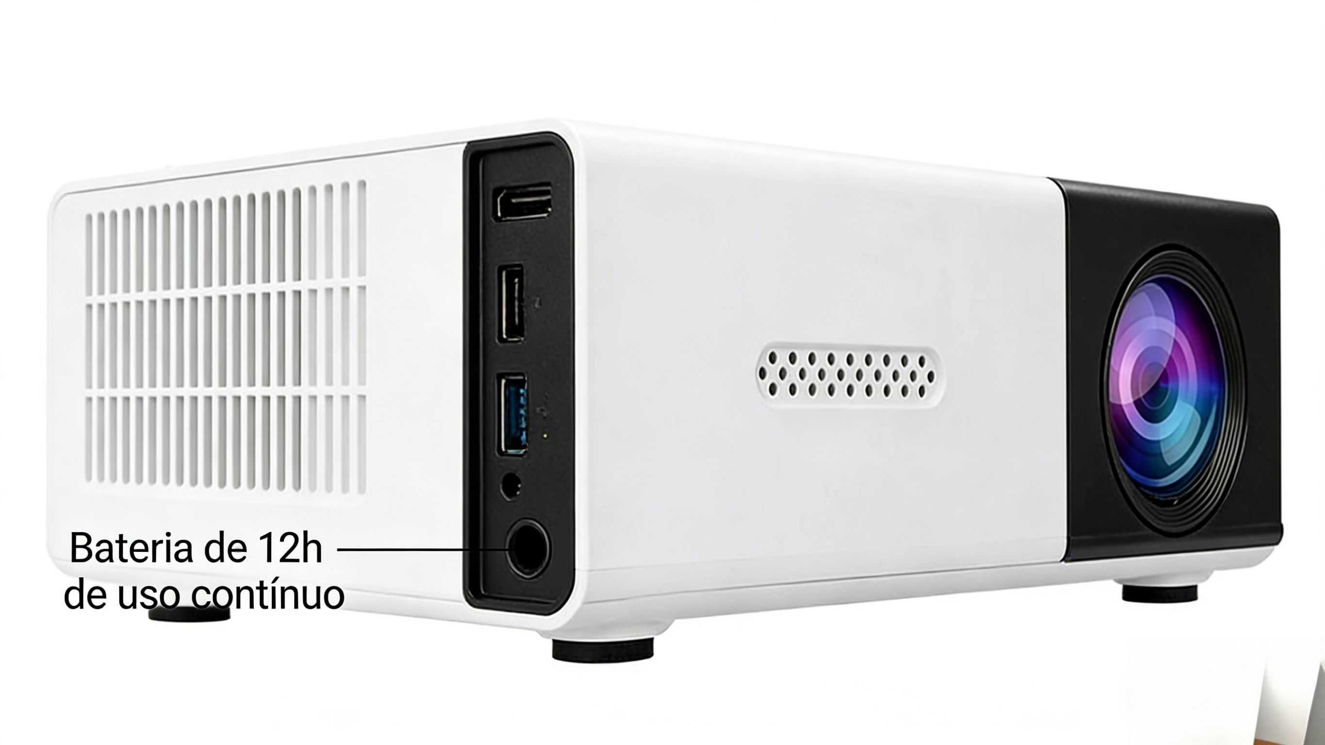 12 Horas de Autonomia (Perfeita para Acampamentos!)Com 12 horas de bateria (compatível com power bank), você leva o projetor para acampamentos no campo, viagens no carro ou reuniões ao ar livre — sem se preocupar com tomadas.