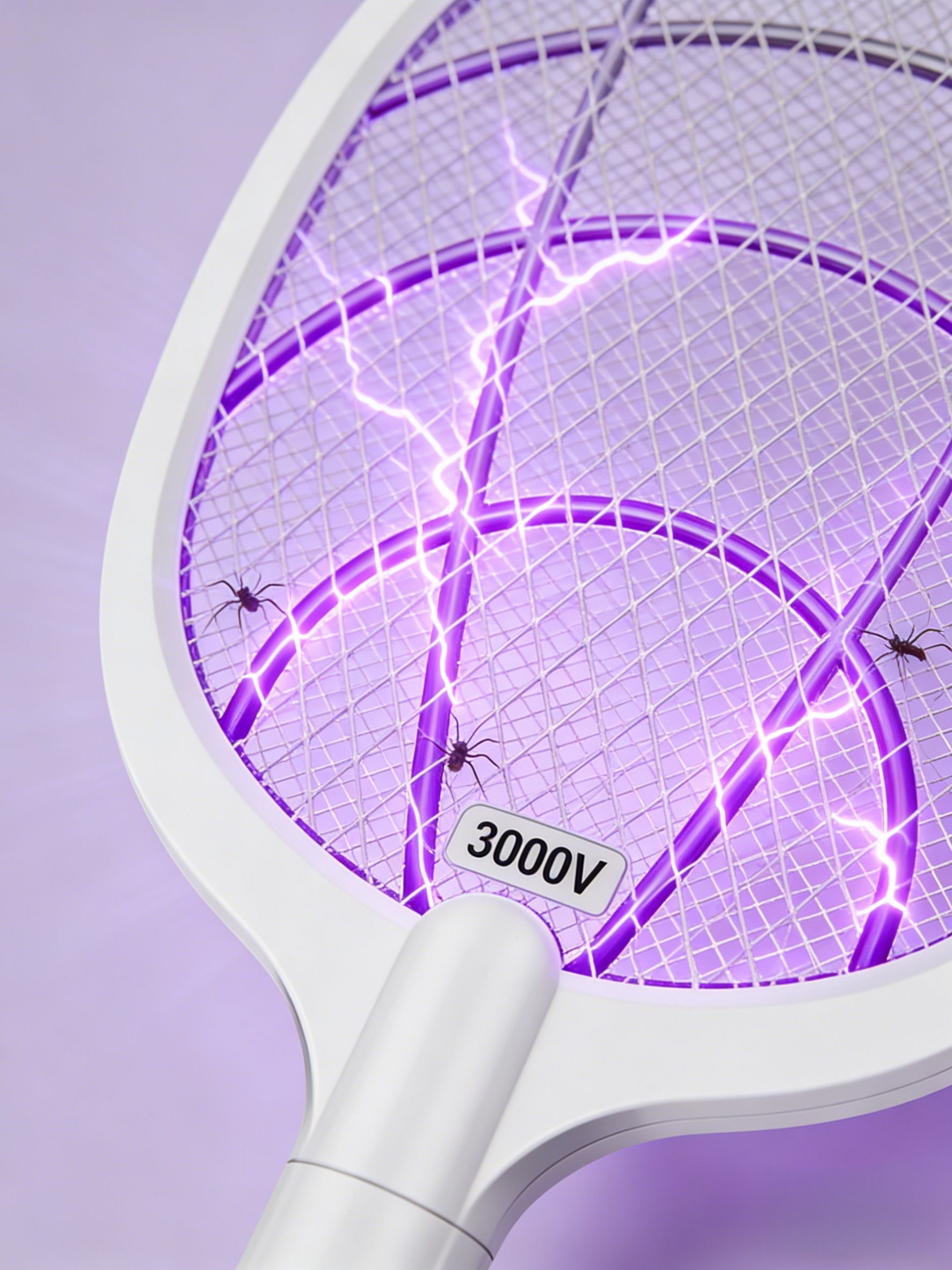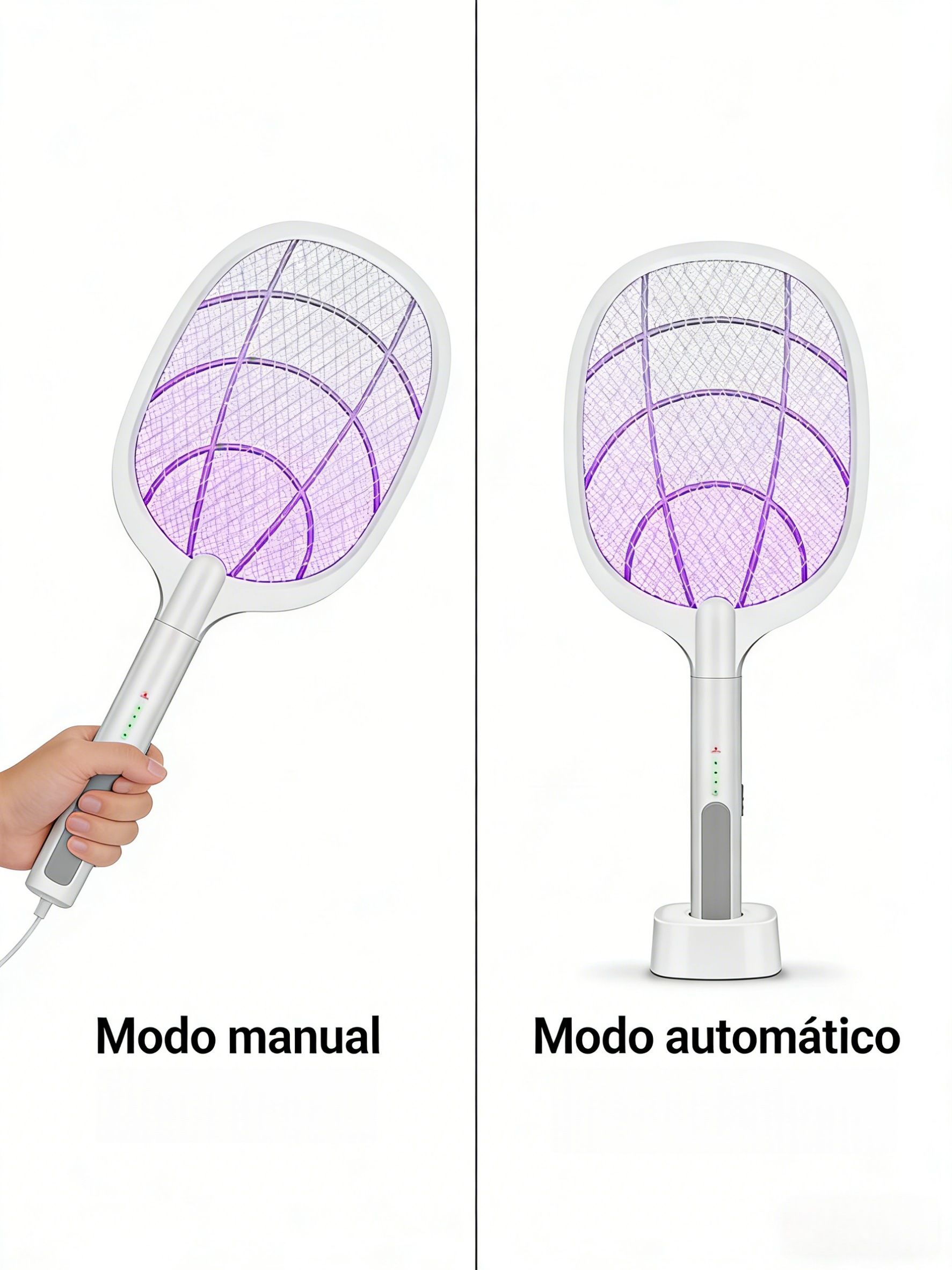 Modo Manual: Bata diretamente mosquitos, moscas e insetos voadores – 3000V de voltagem alta garante eliminação instantânea, sem fugir nenhum inseto!