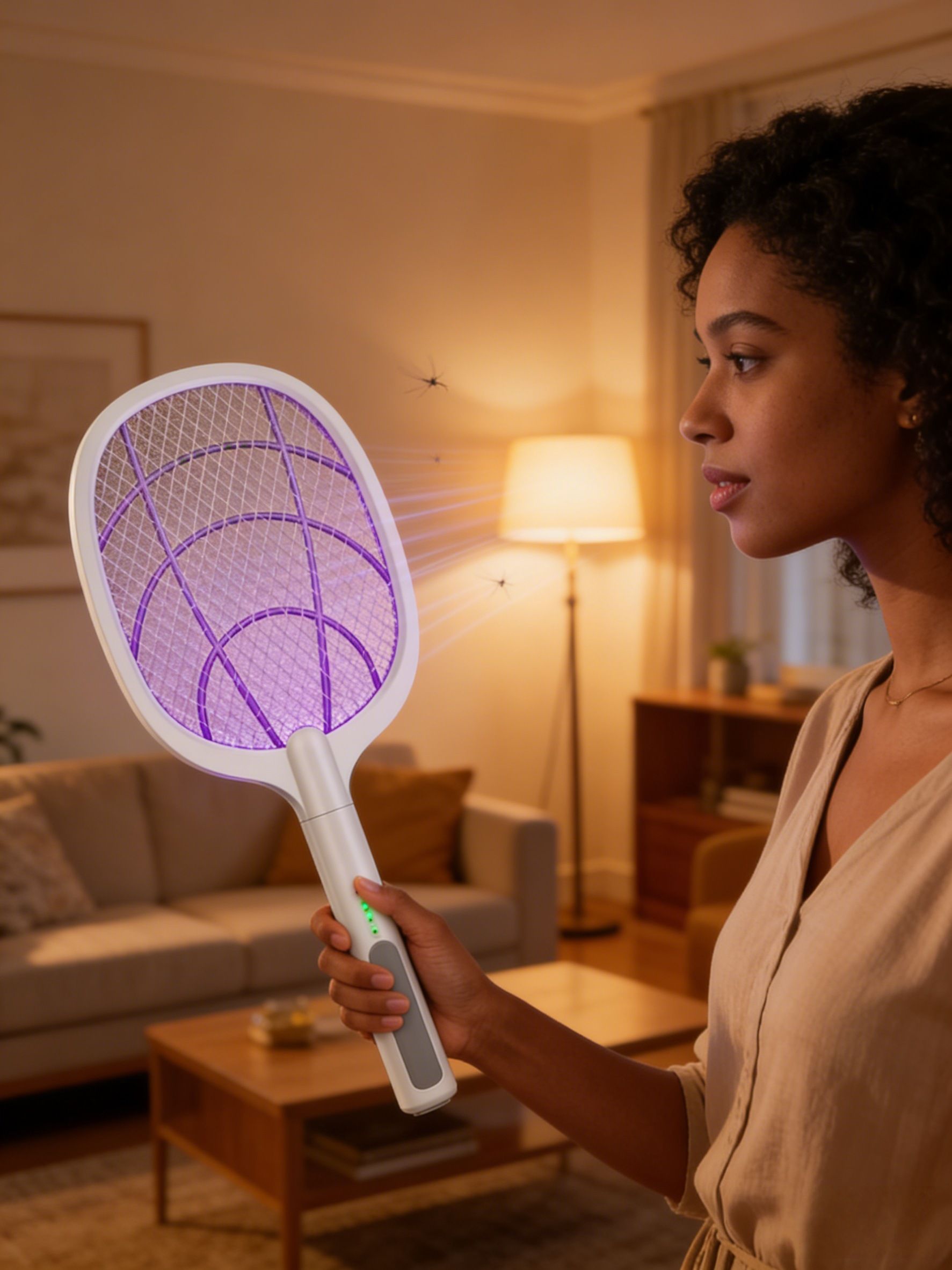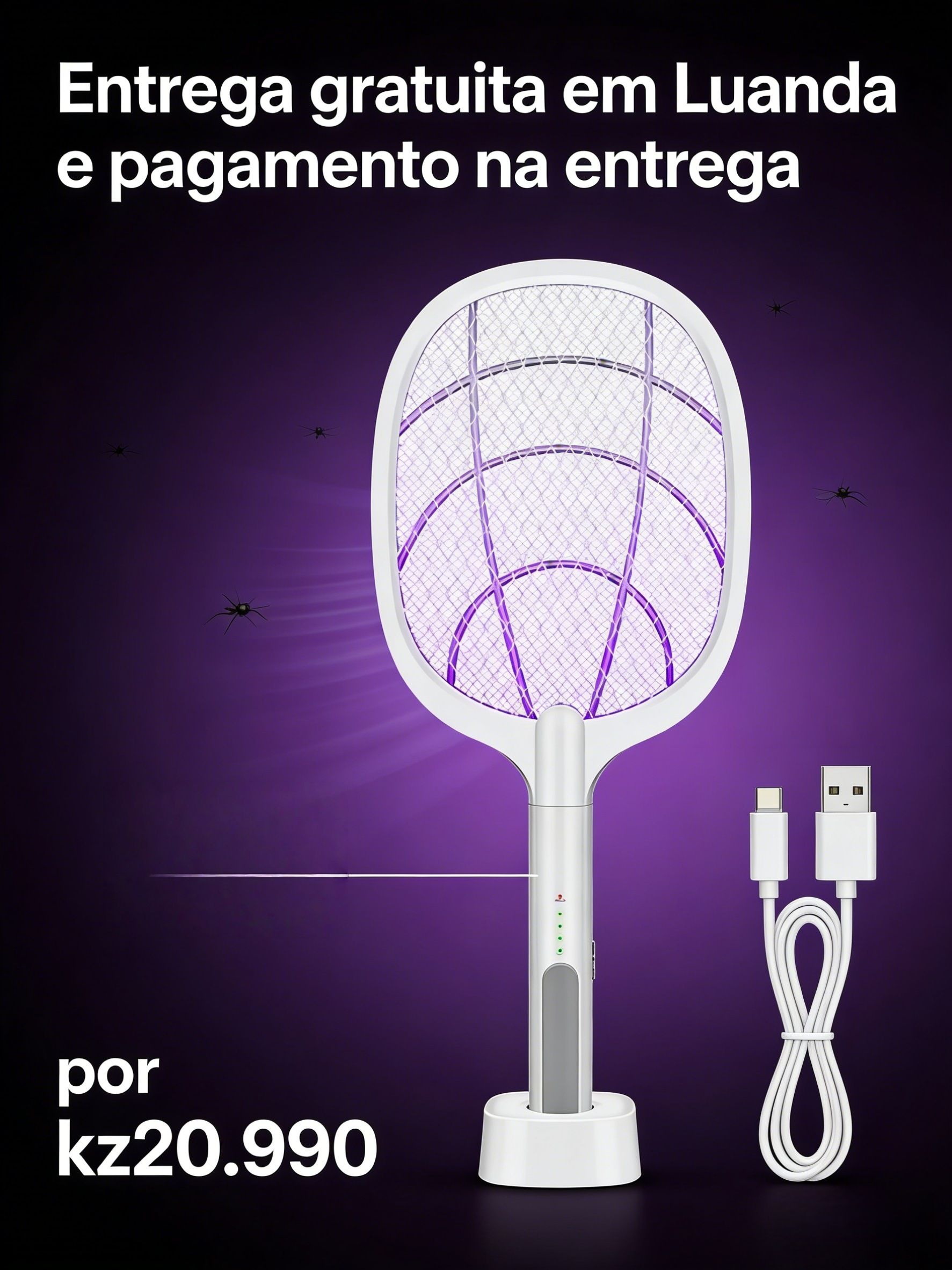 Em Angola, os mosquitos, moscas e insetos voadores são um problema diário – eles incomodam o sono à noite, picam as crianças e ruins a tranquilidade em casa! Métodos tradicionais (inseticidas, repelentes) são cheirosos e podem ser prejudiciais para a saúde das crianças e animais de estimação. Esta raquete anti-mosquito 2 em 1 resolve tudo de forma segura e eficaz, protegendo toda a sua família!
