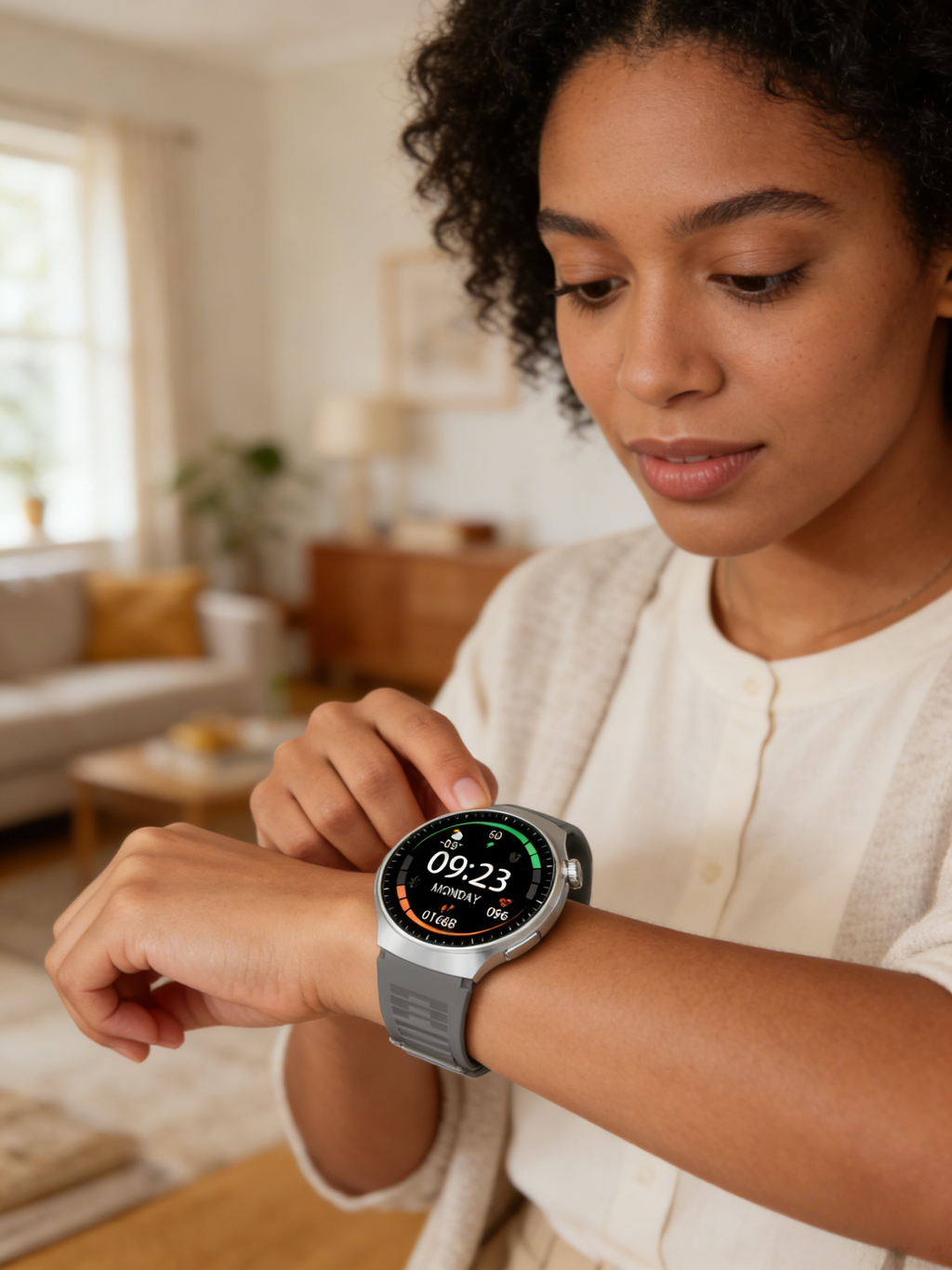 Design Versátil: Disponível com 3 tipos de pulseiras (couro, metal, silicone) — combina perfeitamente com roupas casuais, trajes ou looks esportivos. Corpo fino e leve, garantindo conforto ao usar durante todo o dia.