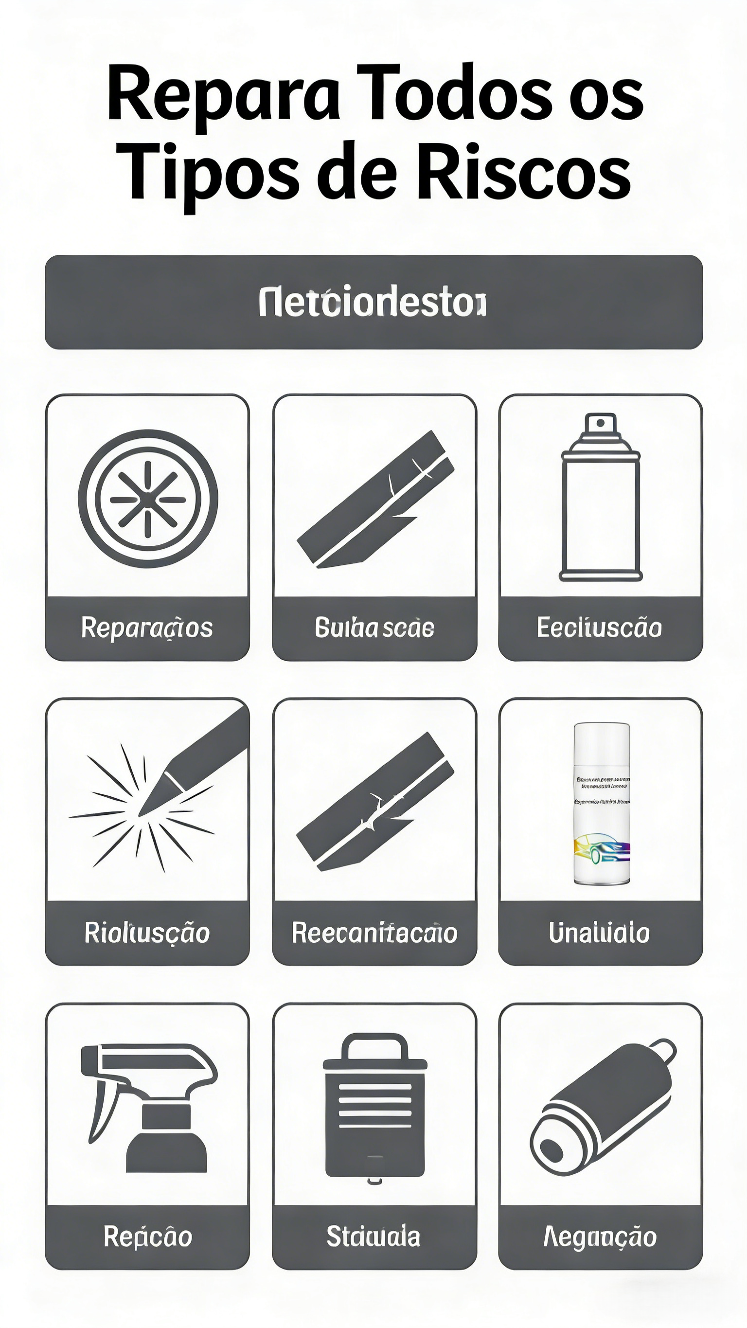 Repara Todos os Riscos ComunsCobre 9 tipos de danos: riscos pontuais, arranhões leves, raspadas médias, danos na tinta base e mais – resolve todos os problemas do dia a dia do seu veículo.