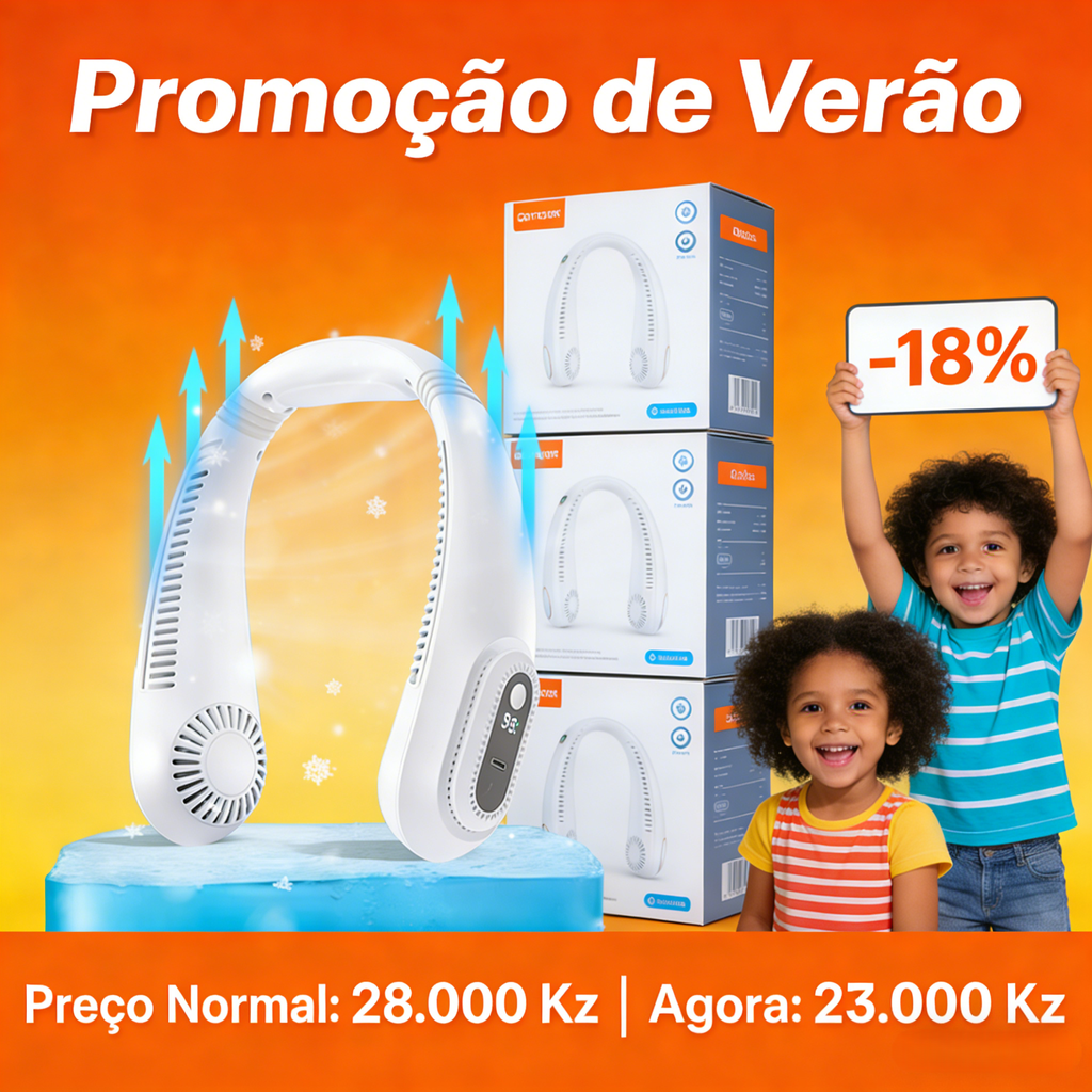 Olá, amigos! 🌞 No calor intenso de Angola, esse Ventilador de Pescoço é o seu novo aliado para ficar fresco em qualquer lugar!